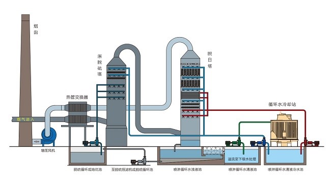 主要分為兩大部分:煙氣冷卻系統(tǒng)和煙氣再熱系統(tǒng)。